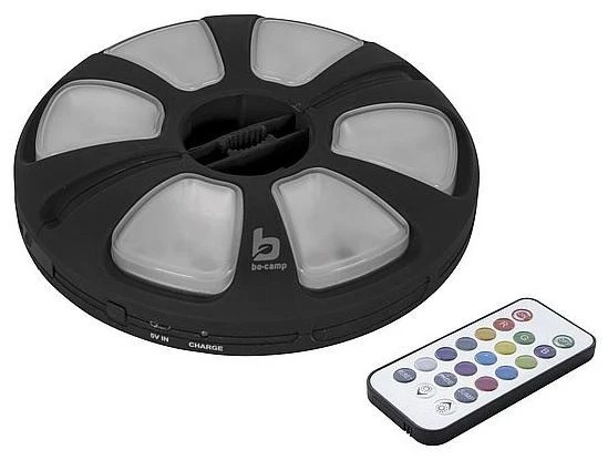 A handy lamp that you can attach to the handle of a parasol or to a tent pole. Gives a pleasant light because of the warm white and different colors of LED lighting. Moreover, dimmable and equipped with 14 different light modes. The built-in Li-ion battery can be charged with an included USB cable. Including remote control..