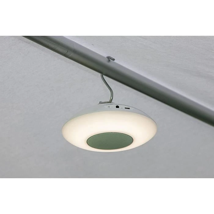 Un Ă©lĂ©gant haut-parleur bluetooth et une lampe suspendue en un seul. La lampe peut ĂŞtre utilisĂ©e Ă la fois sur la table et suspendue. La lampe LED a 6 couleurs de lumière clignotante et 1 mode multicolore. La lampe dispose de 3 modes de lumière (30% 60% 100) et a Ă©galement la fonction que la couleur s’adapte au rythme de la musique. En outre, la lampe peut ĂŞtre facilement connectĂ©e via Bluetooth Ă , par exemple, un tĂ©lĂ©phone mobile pour jouer de la musique. La lampe et la musique peuvent ĂŞtre contrĂ´lĂ©es via une tĂ©lĂ©commande, mais la lampe dispose Ă©galement d’une touche pour passer Ă la couleur de lumière suivante. La lampe est facile Ă charger via le câble USB inclus et est livrĂ©e avec un câble aux et une tĂ©lĂ©commande.