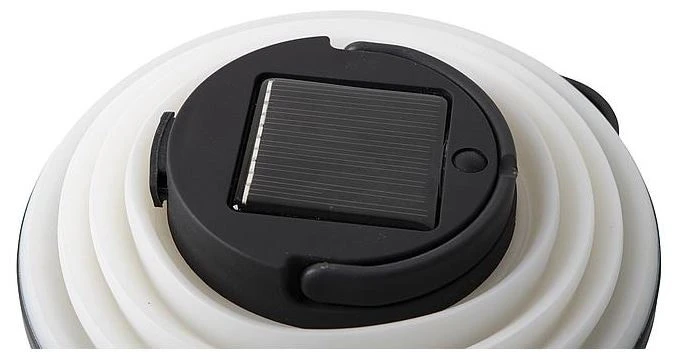 Lampe suspendue très compacte avec panneau solaire. Cette lampe est pliable extra plate car le boîtier en silicone est complètement pliable. Donne une lumière agréable en raison de l’éclairage LED blanc chaud avec 4 modes de lumière. La batterie Li-ion intégrée peut être chargée avec de l’énergie solaire ou un câble USB inclus. Comprend un mousqueton pour accrocher la lampe, par exemple un parasol ou une tente.
