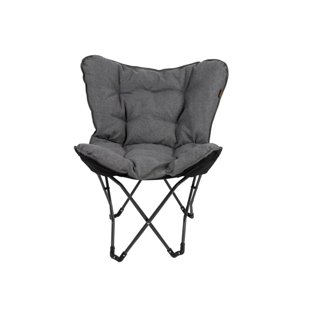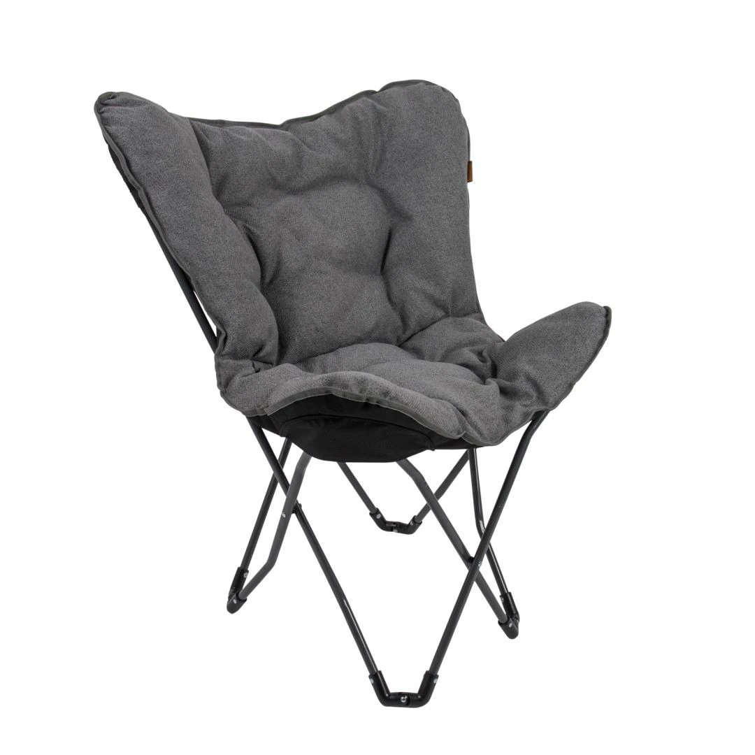 Une chaise papillon élégante de la collection Urban Outdoor. La chaise luxueuse est dotée d’un cadre élégant en acier gris foncé. Le siège gris est fait du tissu Nika. Le tissu Nika est caractérisé par le toucher doux avec un aspect robuste. La chaise est très confortable en raison du tissu rembourré et du siège large et profond. Le cadre est facile à plier de sorte que la chaise est pratique à transporter. Convient pour le camping, dans le jardin, mais peut également être utilisé sur le balcon ou dans la maison.