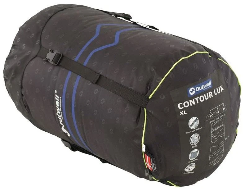 The taller among us will love the Outwell Contour Lux XL sleeping bag. With extra length and width, its what longer legs have been waiting for. Highly versatile, this soft, snug sleep bag offers comfy camping from spring to autumn. Theres a zip-on hood for chillier nights and easy ventilation at the top and bottom to cool off in the heat.