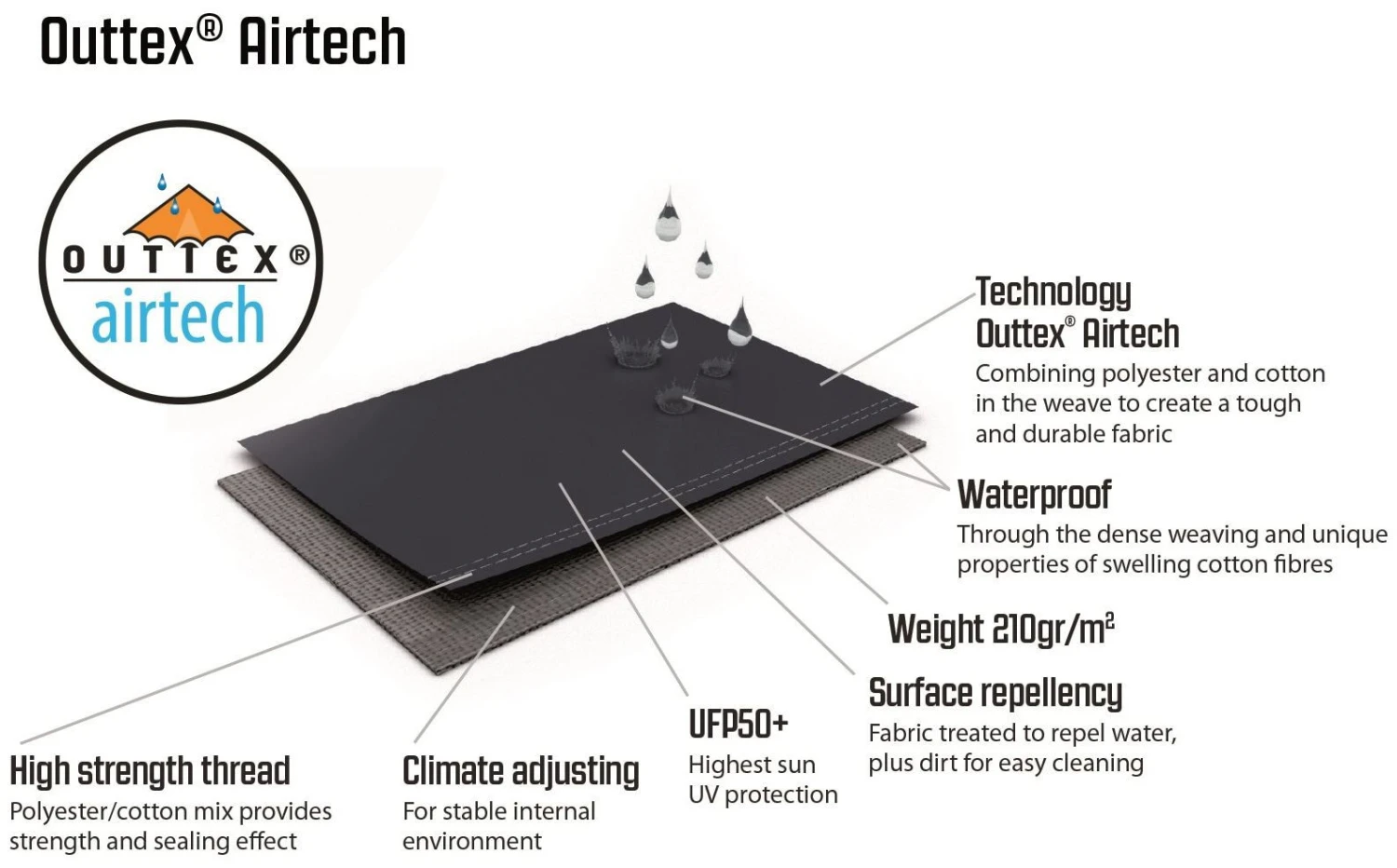 | Tente extérieure | Outtex® Airtech, 65% polyester / 35% coton; |